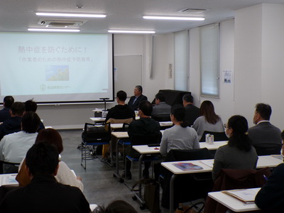 仙台太白支部(大友智幸支部長)では、「労務研修会」が11月22日(土)太白区西多賀市民センターにおいて午後1時30分から約2時間にわたり「熱中症予防教育セミナー」と題して安全教育センター清野雅裕氏を講師にお招きして参加者30名のもと開催されました。