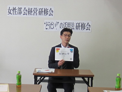 女性部会(大友由美子部会長)では、12月4日(木)午前10時30分から仙台南法人会会議室に於いて経営研修会を開催しました。講師には、大同生命保険(株)仙台支社第一営業課長東祐司氏をお招きし“どうだい?の活用法”を参加者8名で研修しました。未登録の部会員もおり、この機会に参加者全員が登録を完了しました。